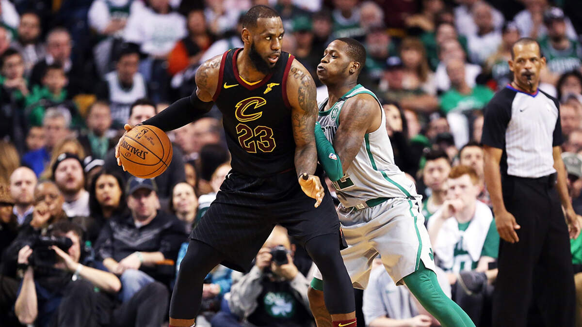 LeBron James guarded by Terry Rozier at TD Garden back in February. (Adam Glanzman/Getty Images)