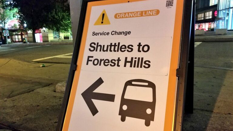 Shuttle buses are replacing train service, making all stops between Forest Hills and Back Bay.