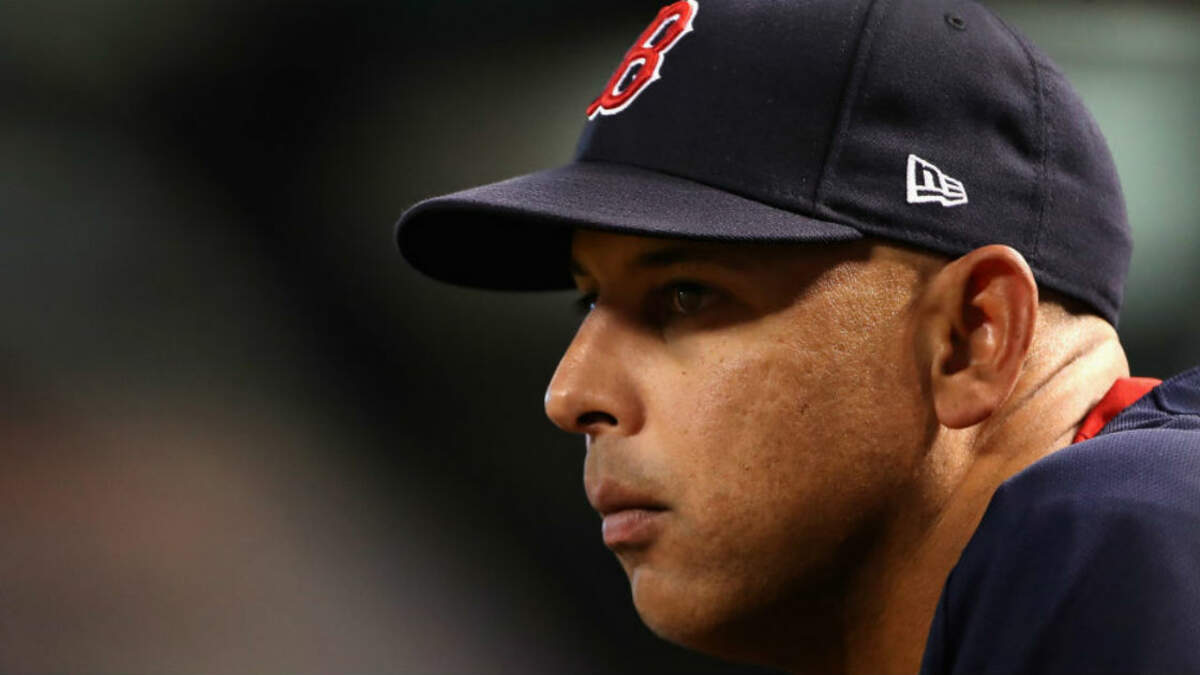 Manager Alex Cora #20 of the Boston Red Sox watches from the dugout during the fifth inning of the MLB game against the Arizona Diamondbacks at Chase Field on April 05, 2019 in Phoenix, Arizona. (Photo by Christian Petersen/Getty Images)