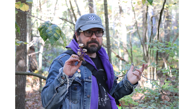 Taylor added that fungi growth depends on weather with more growing during wetter years. He pointed out a multitude of different mushrooms growing along tree roots right now while leading the Fungi Field Walk.