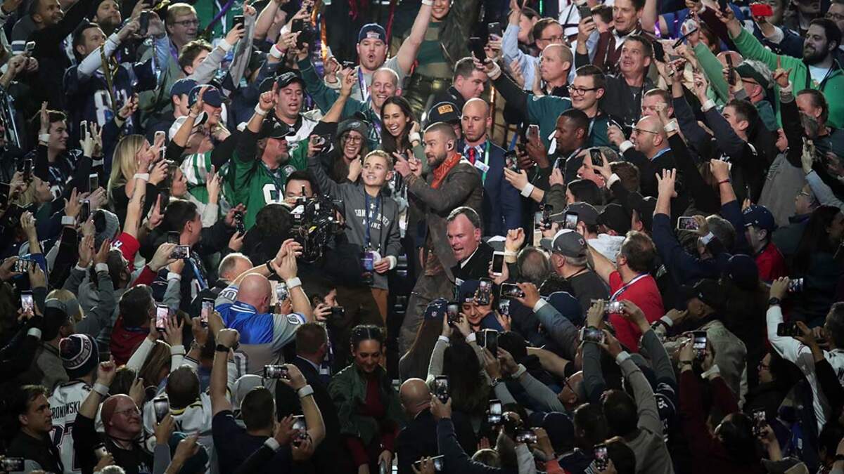 Ryan McKenna, 13, managed to snap a picture with halftime performer Justin Timberlake when the singer went up into the crowd.