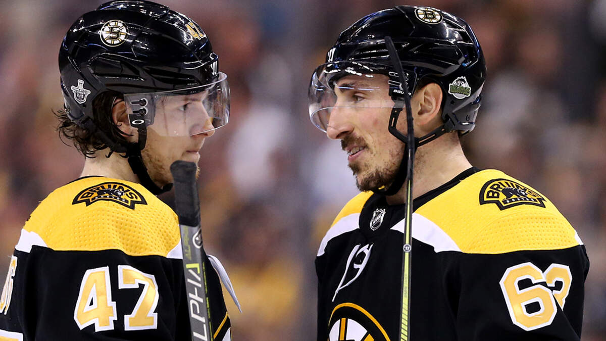 Torey Krug and Brad Marchand during Game 5. (Maddie Meyer/Getty Images)