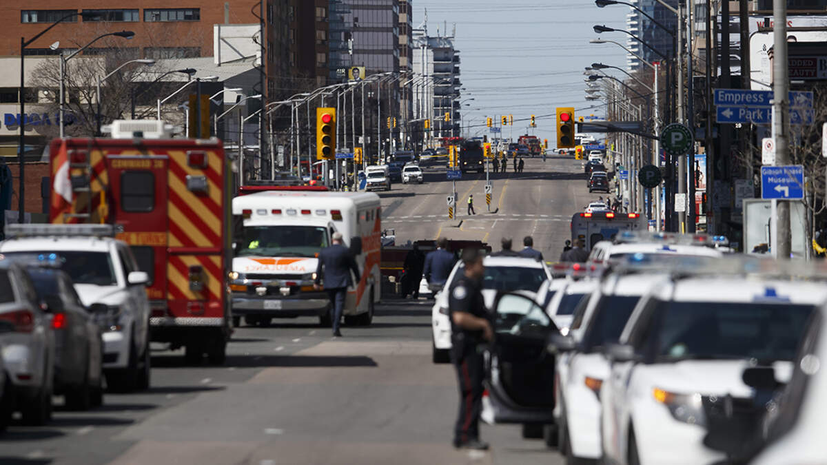 Law enforcement and first responders on scene at Yonge St. at Finch Ave. after a van plows into pedestrians April 23, 2018 in Toronto, Ontario, Canada. A suspect is in custody after a white van collided with multiple pedestrians. (Cole Burston/Getty Images)