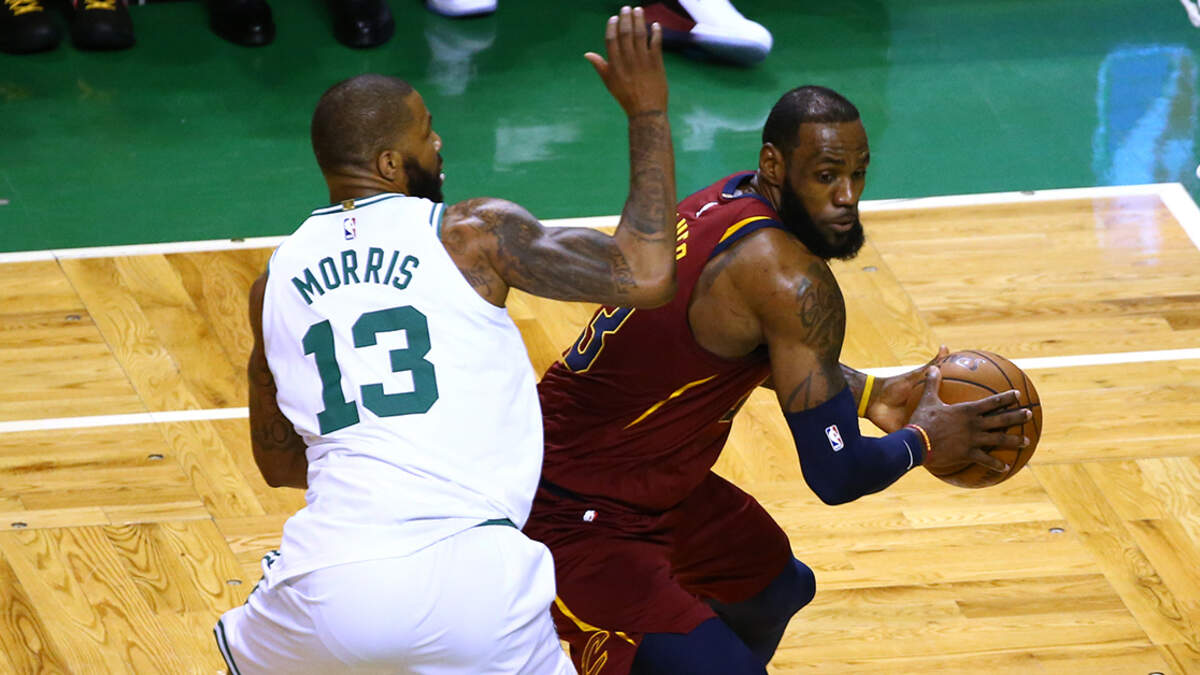 Morris defends James during the first quarter of Game 1 of the Eastern Conference Finals. (Adam Glanzman/Getty Images)