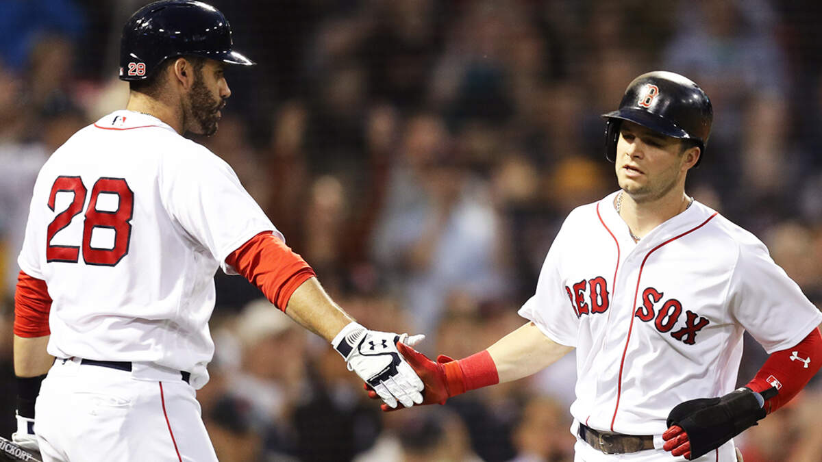 Andrew Benintendi and J.D. Martinez. (Maddie Meyer/Getty Images)