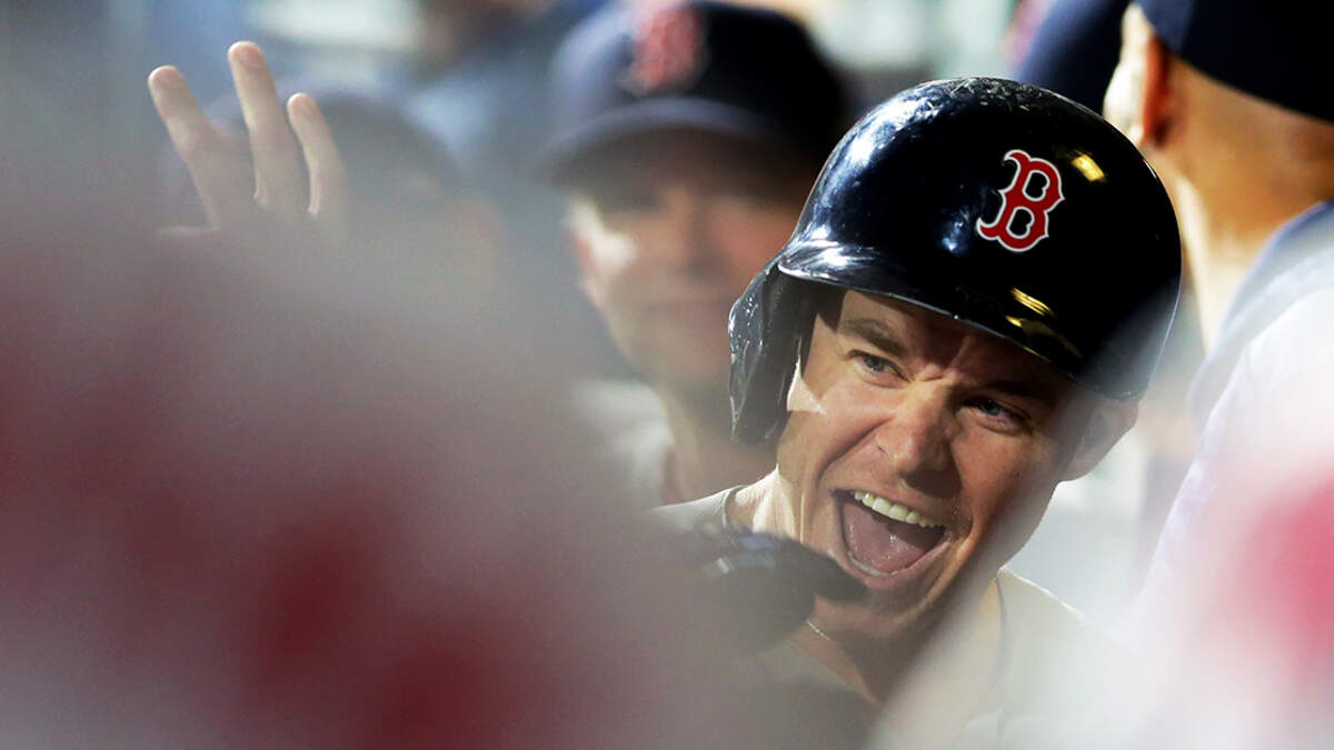 Brock Holt celebrates his game-winning home run Tuesday night. (Hunter Martin/Getty Images)