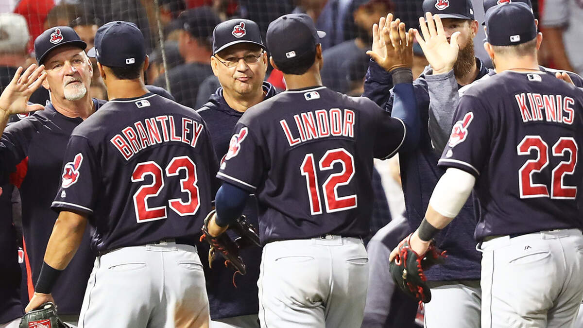 Cleveland Indians players celebrate after a win over the Red Sox. (Adam Glanzman/Getty Images)