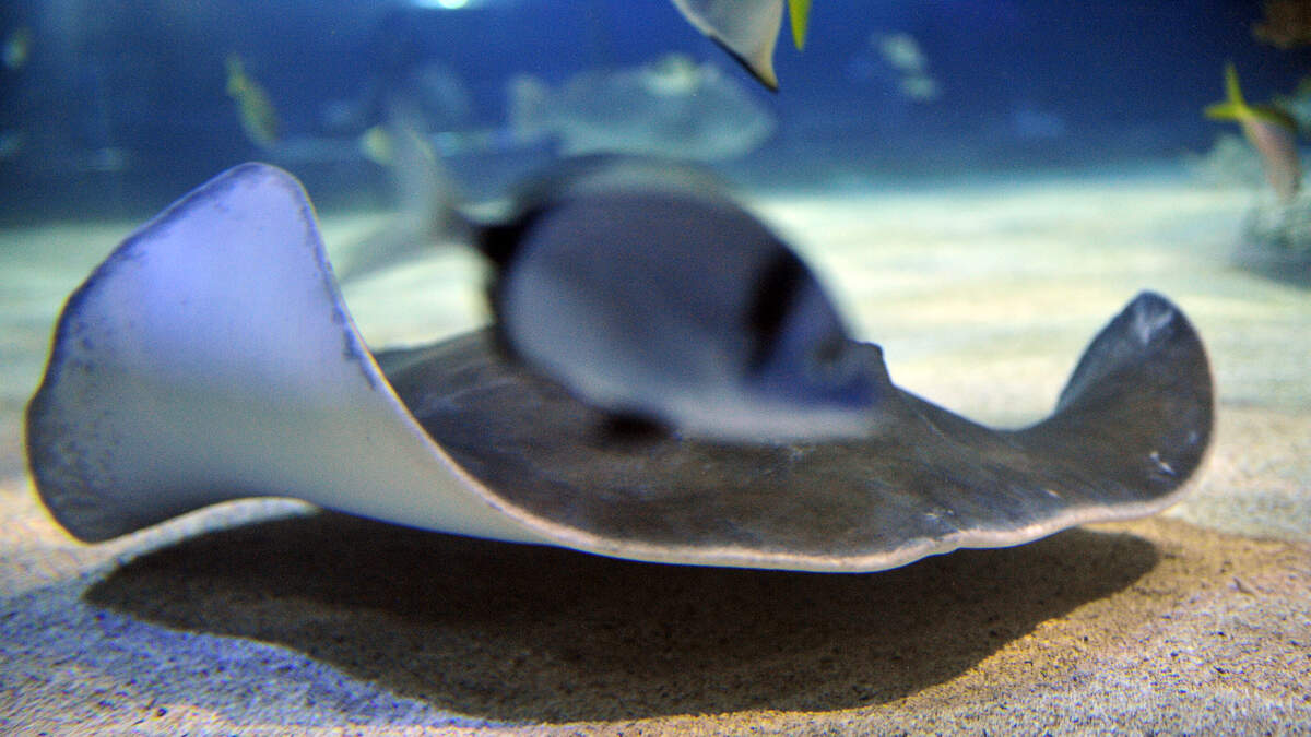 A Caribbean spiny skate swims in the giant aquarium of Tropicarium in Budapest on October 28, 2010 during show for about houndred local children of kindergarten and school. AFP PHOTO / ATTILA KISBENEDEK