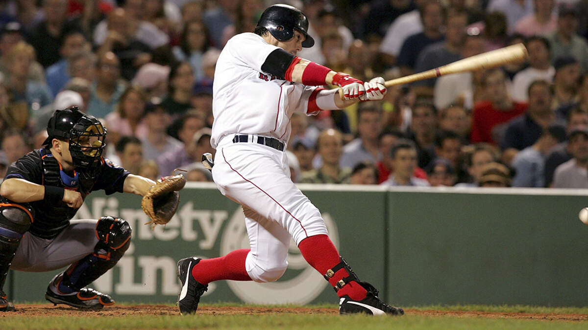 Trot Nixon hits an RBI double at Fenway Park in 2006. (Jim McIsaac/Getty Images)