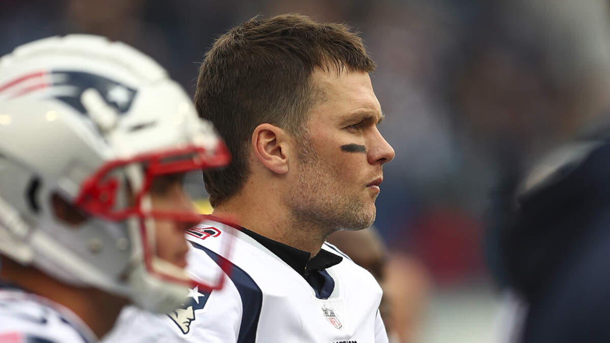 Tom Brady watches the fourth quarter against the Titans Sunday. (Silas Walker/Getty Images)