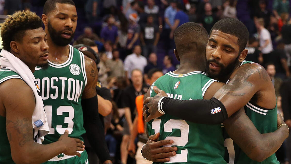 Kyrie Irving, Terry Rozier, Marcus Morris, and Marcus Smart. (Christian Petersen/Getty Images)
