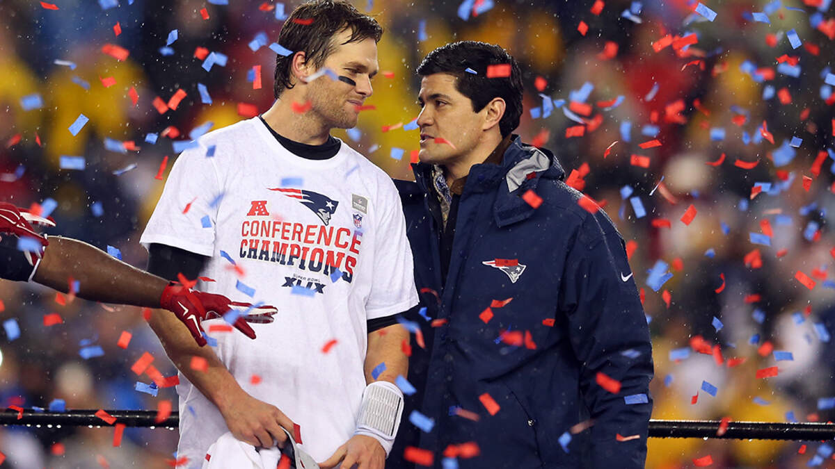 Tom Brady and Tedy Bruschi in 2015. (Jim Rogash/Getty Images)