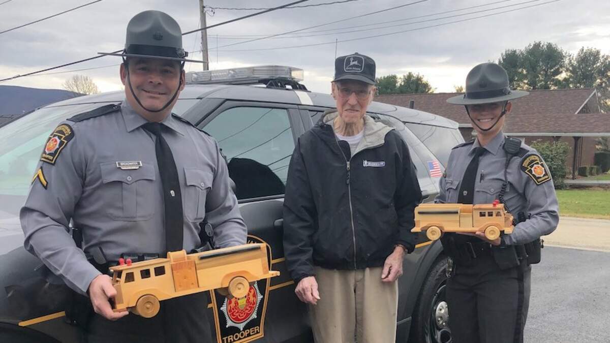 On Thursday (December 16), Pennsylvania State Trooper Forrest Allison shared a photo of himself and a fellow trooper holding up wooden toy trucks alongside the 95-year-old.
