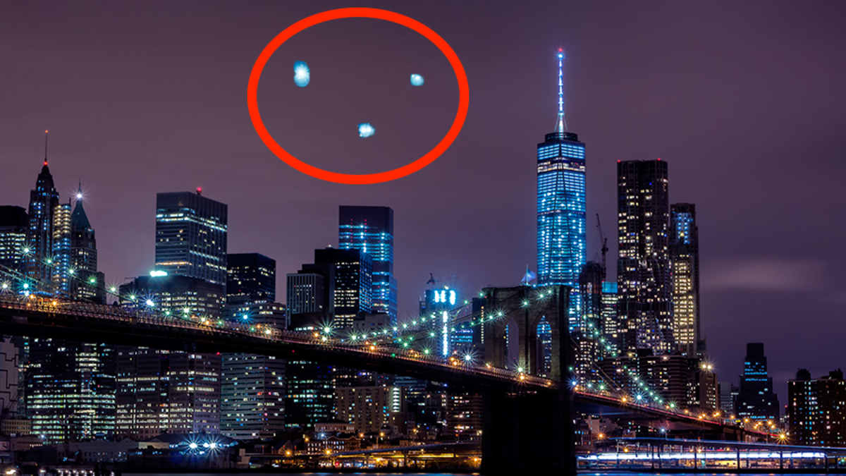 When you hear about UFO sightings, they often seem to happen in smaller towns and less populated areas, but that isn't always the case, and one strange encounter happened in America's biggest city - New York. It was filmed by Hamid Vitalis as he walked to work in Brooklyn, right across the river from Manhattan. He looked in the sky and noticed three orbs of light that formed a pyramid, seemingly hovering there.