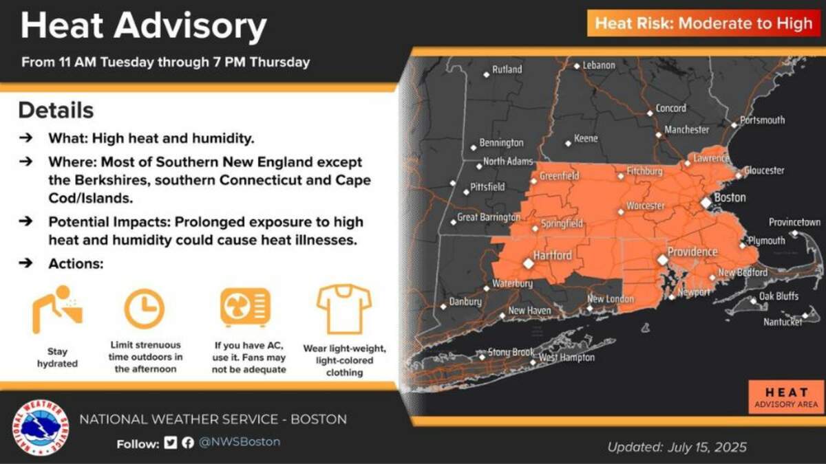 BOSTON (WBZ NewsRadio) — It’s going to be too hot to handle for some areas in New England as a heat advisory is in effect until Thursday night.