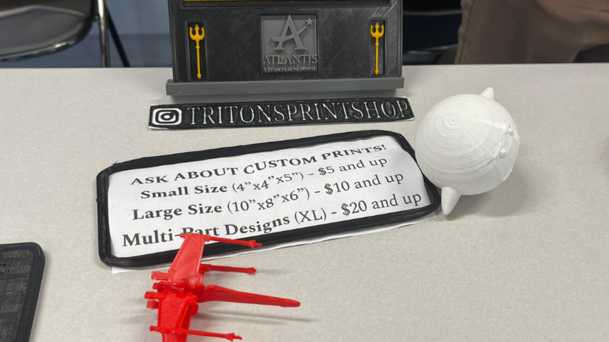 Some of the prices at the store Atlantis Charter School high schoolers have set up to sell their 3D printed toys during lunchtimes. Photo: Kim Tunnicliffe/WBZ NewsRadio