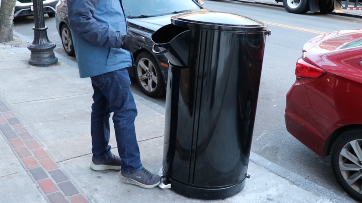 Rodent-proof trash bin installed in the North End in December, 2024. Photo: James Rojas/ WBZ NewsRadio