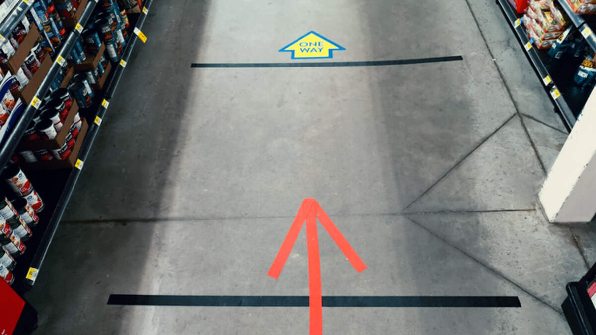 He said he sees the arrows on the floor of his local grocery store, but he doesn't see very many people following them.