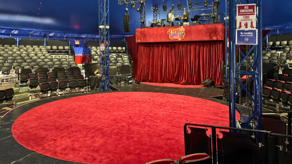 With shows happening under a red and white striped tent, attendees will experience live music from the Fl!p Circus Band, aerialists soaring above ground, acrobats defying gravity, and a clown.