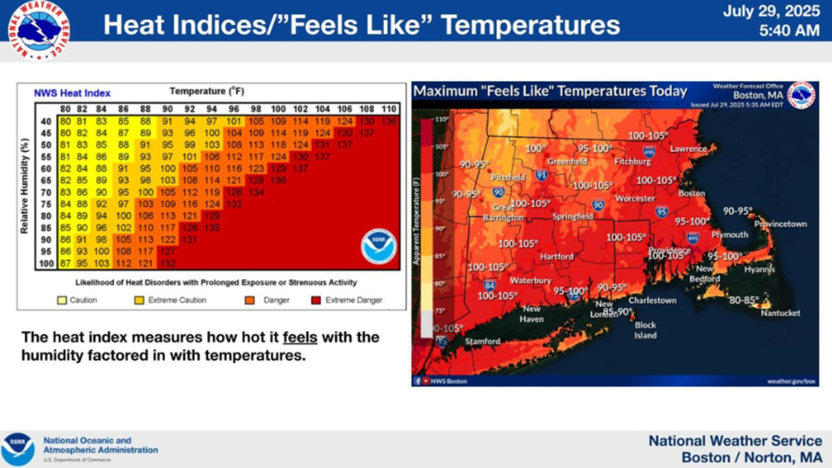 The National Weather Service has issued the Heat Advisory until 8 p.m. on Wednesday. Boston Mayor Michelle Wu also declared a Heat Advisory for the city through Wednesday.