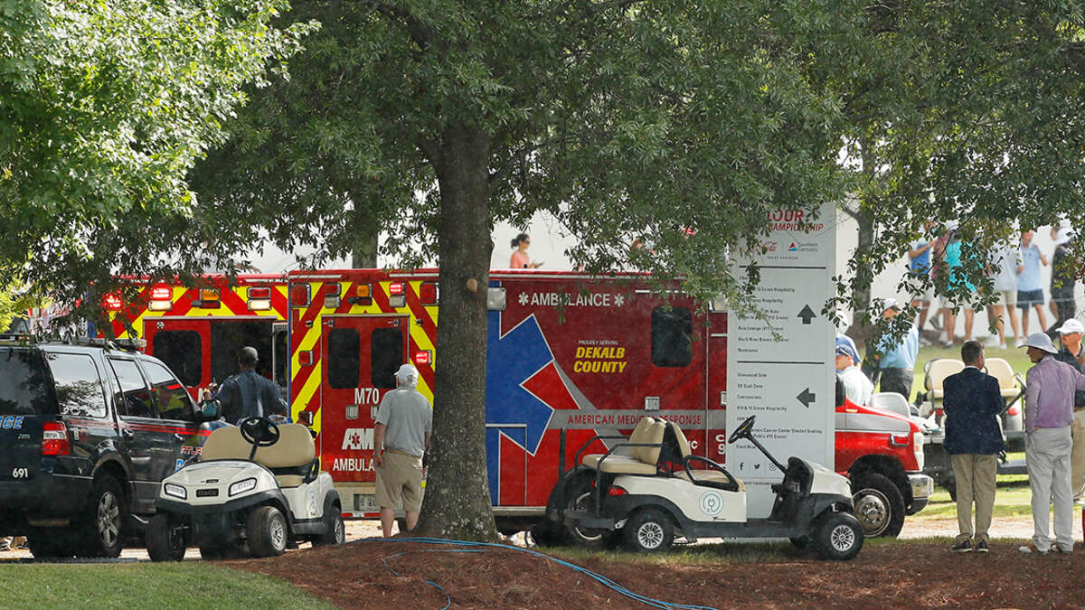 The five ambulances streamed into East Lake across the entrance of the driving range to the 16th hole.