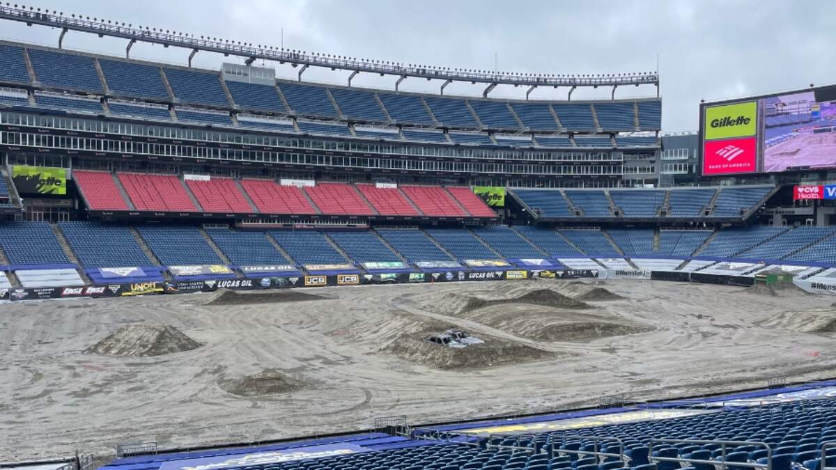 FOXBOROUGH, Mass. (WBZ NewsRadio) — Six million pounds of dirt have been dumped on the field at Gillette Stadium in preparation for Monster Jam Saturday.