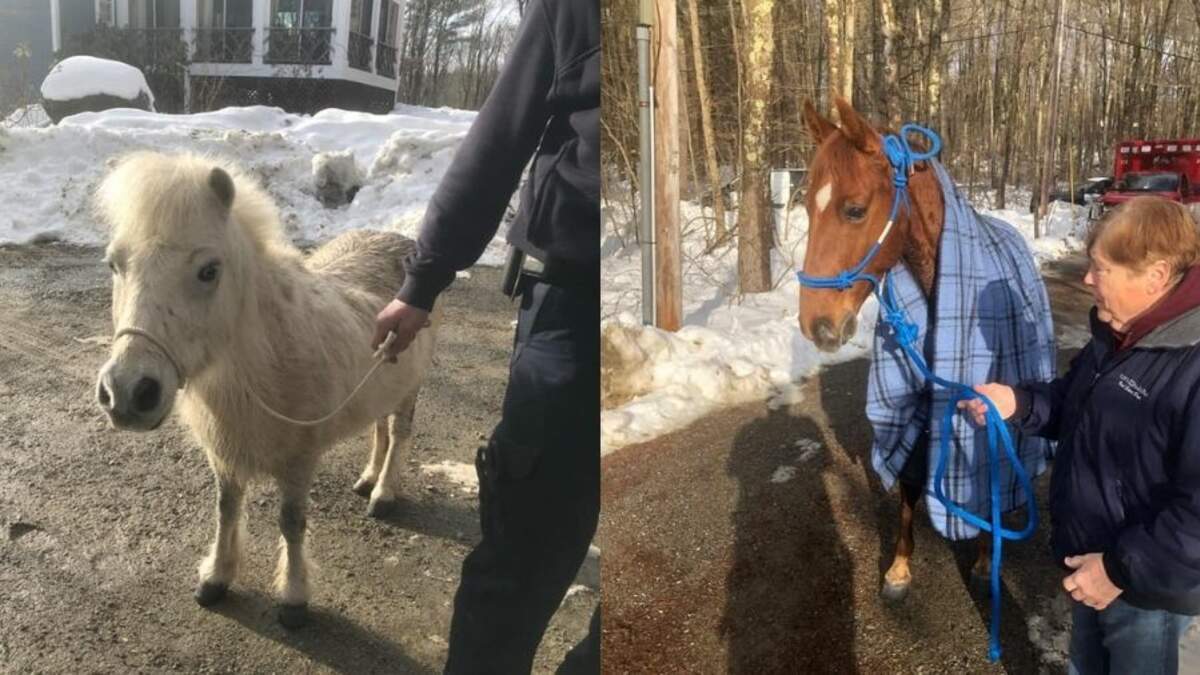 NEWBURY, Mass. (WBZ NewsRadio) — Police are looking for the owners of two horses that were found in Newbury, Mass. near Larkin Road.