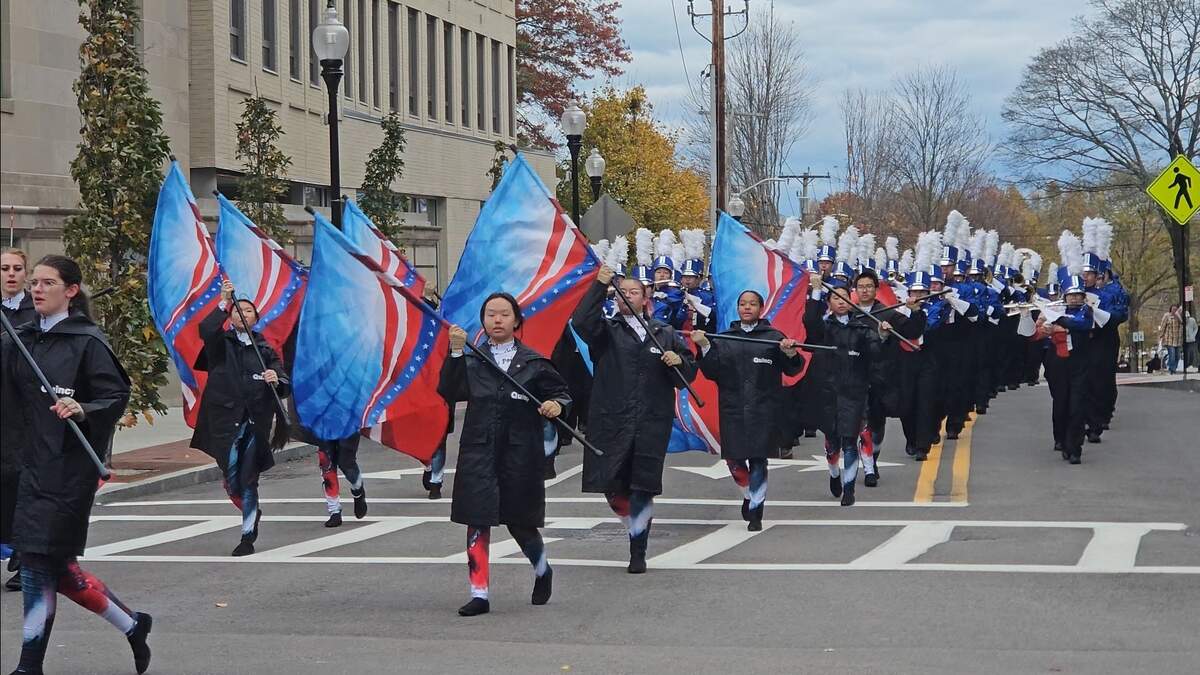 Marching stopped at Merrymount Park, where a Veterans Day ceremony was held to honor those who served.