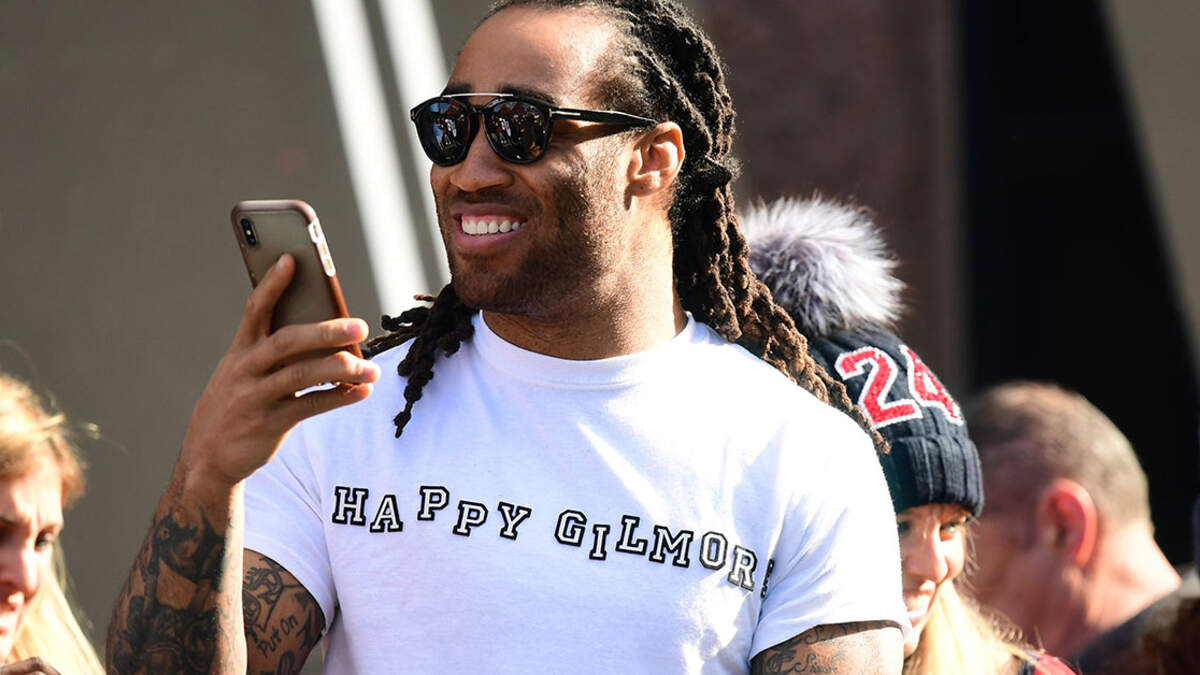 Stephon Gilmore during the Patriots victory parade. (Adam Glanzman/Getty Images)